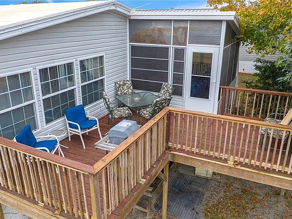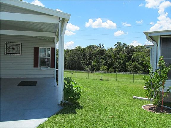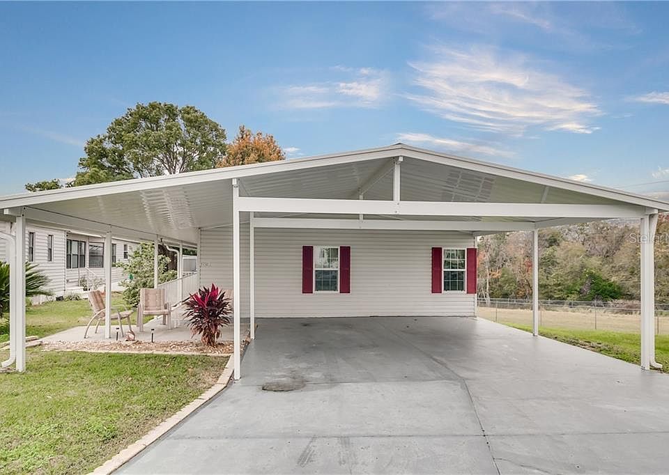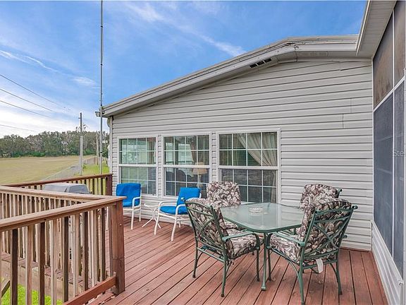 Pasture view from your expansive living and dining room, Florida room and deck. Most PHOTOS will be updated soon, but these are from when it sold in 2/19. This partially furnished home is a Palm Harbor with updated, bank of 6 insulated windows in the living room and new front door. Seller's have created an outside living room just off the carport; perfect for visiting with neighbors during quarantine, surrounded by shrubs for privacy. They've also created a concrete pathway down to the "basement" hurricane room and expanded it to also be a functioning shed with a lot of shaded outside work and play space. Kitchen has "island" Jennaire range top with down vent, wall oven and Maytag dishwasher. Master (13x17) feels massive and has the laundry in the large master bath; can be moved back to the entry, but it is beautifully designed with attractive storage in mind, making a nice entrance. Secondary Bedroom has skylit bathroom just across the hall. Membrane roof installed in 2012, newer carpet and laminate. L shape Florida Room has an entrance from the outside as well as to the deck. Need storage and want a peaceful view? This home is for you!
