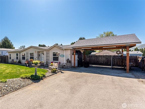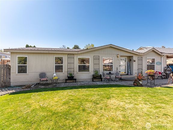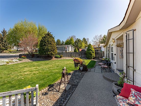 Welcome home to this well-maintained 3-bedroom manufactured home on leased land. As you enter, you'll notice the bright and cheerful atmosphere. The kitchen, which is open to the dining area, features an eating bar, and the dining room opens up to the patio. The primary suite is spacious and located at the opposite end of the home from the other bedrooms. A definite bonus is the fenced backyard, which includes a spacious patio, a hot tub, and three sheds for storage and outdoor enjoyment. The carport is also roomy, and the location is convenient! Come relax and enjoy the serene setting. Irrigation water and sewer are included in the monthly lease fee of $500.