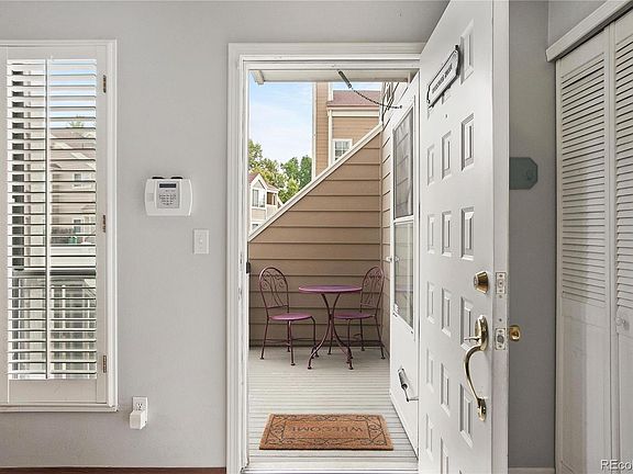 Relax in this sunny, east-facing 2 bed/2 bath end unit. Open floor plan with hardwood floors in the living room, plantation shutters, breakfast nook and spacious galley kitchen. The floor plan offers lots of options with bedroom, bathroom, and large living/family room on each level. The main floor includes a large master bedroom with walk-in closet, and a full bathroom. Enjoy the private outdoor space on the patio right off the dining area - very private and quiet with no building immediately behind! Detached one-car garage. Washer & dryer included. This is a nicely maintained complex with a great outdoor community pool. Easy access to DTC and Lowry. Close to Cook Park Rec Center, and tons of running/biking paths on the Cherry Creek and Highline Canal trails.
