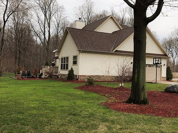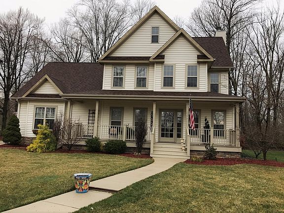 Beautiful custom built home in Villages of Sand Creek. Less than an hour from Chicago and minutes from the beach and premier golfing. Spacious home with over 3600 finished square feet, 4 bedrooms, formal dining room, office/den, and finished basement. Home features upscale finishings including hardwood floors, ceramic tile, granite countertops, stainless steel appliances, built-in speakers throughout home, vaulted ceilings and a stunning, 2-story stone fireplace in family room. Main level master suite with HUGE walk-in-closet, custom-tiled shower, double vanity and whirlpool tub. Picturesque wooded setting on immaculately landscaped cul-de-sac lot with full-yard irrigation system. Inviting front porch, large brick patio and covered deck are also perfect for entertaining. Great home, great neighborhood, great value! Schedule your showing!