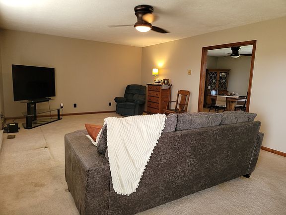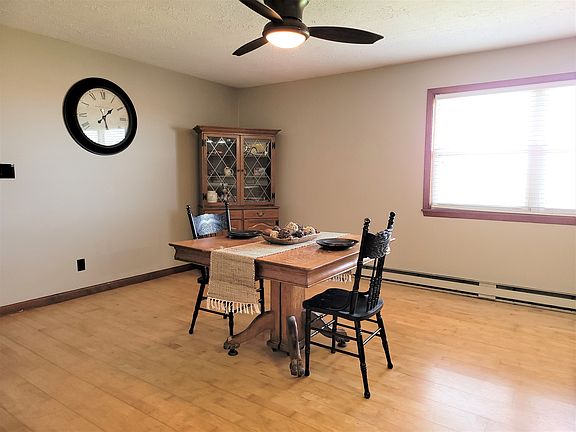 Brick ranch on 1 acre now available! This home offers huge rooms and an oversized attached garage with finished walls! You'll find plenty of space in the 24'x14' living room, and an equally large kitchen and dining room combo. The kitchen offers solid medium stained wood cabinets, a breakfast bar, appliances and a neutral color palette. The laundry room is just off the kitchen and offers plenty of closet space for a pantry, plus adorable shelving above the laundry center. The water softener is owned and remains with the property. Down the hallway are the linen closet, a full bath and 2 very large bedrooms. The back yard is fenced, plus there is open space outside the fence for a garden, shed, etc. HVAC is 5 years old.