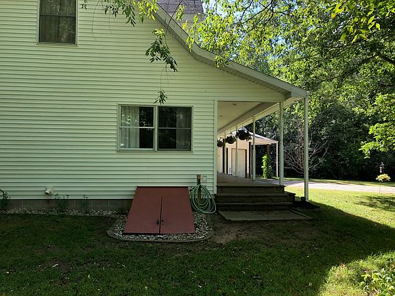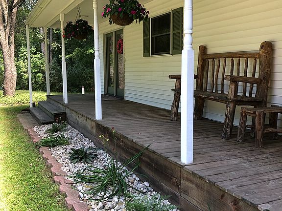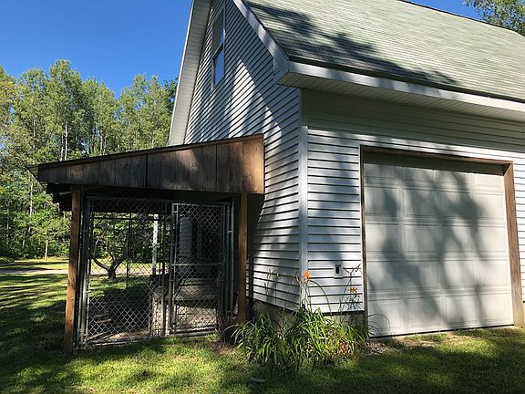 Very private home with a long driveway, tucked in the woods. Almost 5 acres, 1,350 square feet, 3 bedrooms, 1 and 3/4 bathrooms, 2 covered porches, 2 stall garage with pull through garage door, loft in garage, outdoor wood boiler. Built in 2001. Appliances included. Close to public land.