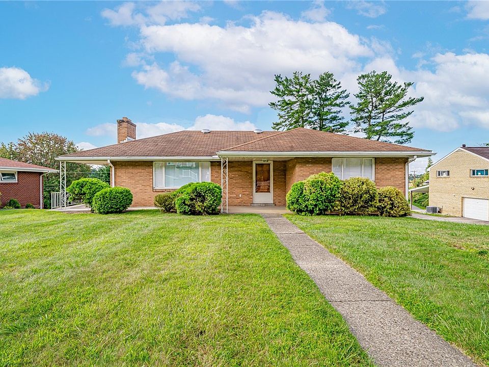 Situated on a quiet cul de sac, you'll find this wonderful brick level entry ranch home on a fabulous 1/3 acre lot for your enjoyment! Not your typical ranch, you're sure to appreciate the generous sized rooms! A roman stone fireplace is the focal point of the Living Room! From the kitchen step out to the side porch! The owners bedroom has it's own full bath with a tiled shower! Exposed hardwood flooring in the Living/Dining Rooms, hallway and all bedrooms! The lower level provides a spacious game room with a second fireplace, laundry (washer/dryer stay) and a nice storage area! Updated electric service! Furnace and AC 2 years new! Roof 2012! Great convenient location! Westmoreland transit available for bus commute to Pittsburgh! Move in ready for a quick close! Being sold "as is" Stairlift can be removed if requested.