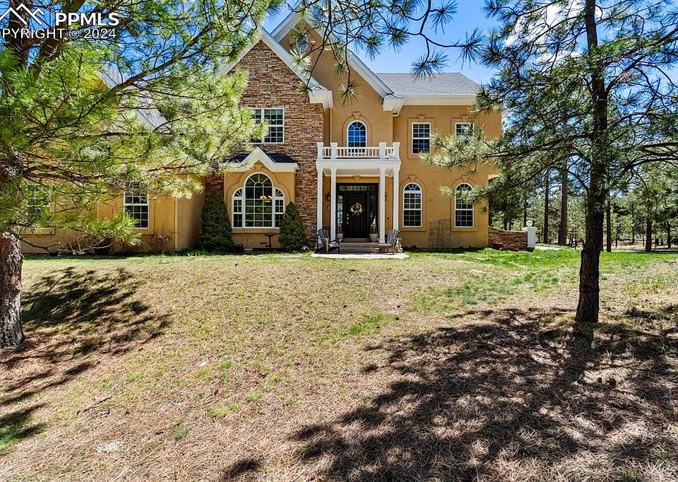 Stunning Luxury 3 Story Home on 5 Pristine Acres of Land in Black Forest! This cul de sac lot encompasses the meaning of privacy, with an undeveloped lot on either side. An absolutely bespoke mixture of towering pine trees and lush green meadow leaves you with a feeling of true country living just outside city amenities. Inviting and open main level floor plan with an abundance of dramatic arched windows, matching custom molded archways and hardwood flooring. 9+ foot ceilings throughout home! Stunning foyer opens to large living room with stone surround wood fireplace and built in cabinetry. Formal dining room with gorgeous tray ceiling design. Incredible kitchen space with large island and pantry is for you to completely customize! Walk out to sprawling wood deck and breathtaking views of the grounds. Both the study and office on the main level work great as flex spaces, with walk outs and additional closet space. Laundry room on main level leads to oversized 3 car garage. Upper level features large loft, craft room with french doors, 3 secondary bedrooms with pocket doors connecting to jack and jill baths. Master suite features dual sided fireplace, retreat area, luxury 5 piece bathroom, walk in closet and private balcony. Secret alcove in bedroom leads to 3rd story apartment with room for whatever your needs are! Upper level apartment also included 3/4 bathroom. Walk out basement features large family room with fireplace and built ins, separate alcove perfect for game table, full sized kitchen and two additional bedroom and full bath! RV parking with separate waste station. Home built on floating foundation with incredible craftsmanship throughout. Welcome home to your serene retreat or unparalleled privacy nestled amidst the tranquil beauty of Black Forest.