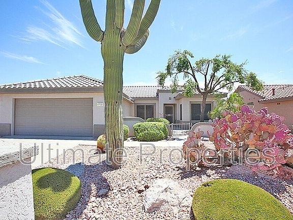 HALF OFF FIRST MONTHS RENT!! 2 bedroom + office/den, 2 bathrooms located in the age restricted community Sun City Grand. Open floor plan. Kitchen features breakfast nook, lots of cabinet space, refrigerator, range/oven, built in microwave and dishwasher. Master suite features dual sinks, walk in shower and walk in closet. Washer and dryer are also included. Backyard features large extended covered patio. Landscaping service is included. Age Restricted Community 45+ Pet Details: All Pets Allowed