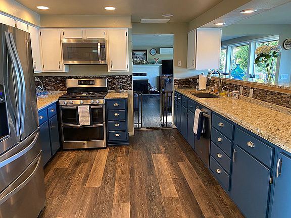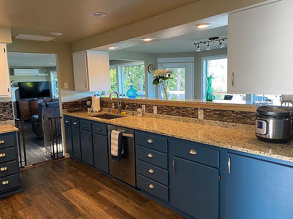 Across the street from a golf course, this .76 acre lot includes a 2333 square foot 4 bedroom view home with deck that expands the entire width of the home. Fully remodeled home includes a hot tub, fire pit, boat dock and gazebo at the waters edge. Also included is a 1584 square foot heated garage and shop with loft storage for all of your lake toys. RV parking as well as many parking spaces are available on this fenced property. All appliances are included. LVP flooring throughout home.