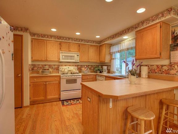 EMERALD VISTA. Well maintained w/4 Beds & 2.5 Baths in convenient Fairwood location w/neighborhood park. Main level features Living Rm., Kitchen open to Fam. Rm w/gas FP. Kit. Stove/Oven & DW have never been used. 2ND Kit in finished Garage that can be converted back to park vehicles;appliances stay except W/D; Dining area & full sized Laundry room. LRG Master Bed w/W-I Closet + gas FP. 3 add. Beds, full Bath up & Office Nook.Private, fully fenced BY backs to KC Parks land. Large Patio,security.