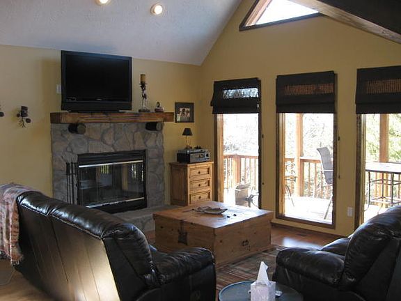Lakefront walk to the water 2008 home with 3 bd 3 ba with log siding comes completely furnished and turn key ready. All appliances stay and a large 10' x 30' boat slip with swim platform are all included in the price. This home has an attached garage, full walkout basement, cozy fireplace, stamped concrete patio with built in fire pit. Just come and enjoy the lake.