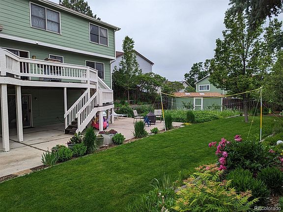 Inside, you'll find a great room with vaulted ceilings and a custom cherrywood mantle over a wood burning fireplace, adding elegance and warmth. The home has been updated throughout, including most bathrooms, and features additions in the walk-out basement. A highlight of this property is the large, private backyard with professionally curated landscaping and 620 ft irrigated garden beds with veggies and cover crops. From the play area and hot tub to an assortment of fruit trees including Montmorency peach, Macintosh apple, and two Honeycrisp apples, this backyard is a haven for relaxation and outdoor enjoyment. This home is within walking distance to the Aurora Central Rec Center, bike paths, and the neighborhood pool. Don't miss the opportunity to own this exceptional home where space, privacy, and natural beauty come together seamlessly.