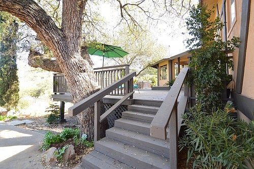 Fantastic opportunity:2 houses on one lot. Beautiful Sprawling 5BR/3.5BA split level home. Wrap around porches with views and all flat usable land. Large kitchen with custom built solid wood cabinetry, granite countertops, and brand new stainless steel appliances.The master bedroom has large walk-in closet and glass sitting room attached. Fantastic family room downstairs with it’s own kitchen and bath. Separate 1 BR/1.5 BA cottage provides for extra income. Round Gazebo, perfect for entertaining. Property has it's own well as well as a secondary well. Square footage is for the house. The separate bungalow is about 700 sq. ft. with potential for extra income. Similar units are rented for about $1200 a month. There is a laundry room in the main house plus additional laundry hook ups for extra set of washer/dryers. Kitchen is equipped with brand new trash compactor and pantry with sliding wood drawers. 2 additional Water storage tanks behind the main house. Fully fenced backyard safe for kids and pets. 1000 sq. ft. with overhead storage of cottage industry/shop area. New carpets, laminates, and linoleum throughout. Roofs completely redone in 2011. All School buses pick up at the trading post store across the street.