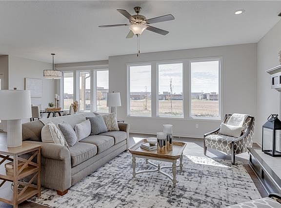 The Harlow V, by Prieb Homes, Inc. is located on Cul-de-Sac Homesite. 5 Bedrooms and 4 Baths with a 3-Car Garage. The first floor includes the Flex Room/5th Bedroom. The lovely Two-Story vaulted Entry leads to a large and open Great Room, Dining Room, Kitchen and Breakfast Area. The Large Center island in the Kitchen has ample work space and additional storage options. You'll love the Dry Bar/Serving Pantry that is located between the Great Room and Dining Room. A Boot Bench and Entry Closet are located in the Mud Room. The Upstairs Laundry Room can be accessed from both the Hallway and Primary Bedroom Closet. The Primary Bathroom features a large tiled shower with two shower heads and a corner bench. Vaulted Ceilings in all Bedrooms, Raised Vanities in the Primary and Powder Bathroom. Sq. Ft. of home is Approx. please verify with onsite agent. We have a furnished model of this plan at 17493 W 165th Street.