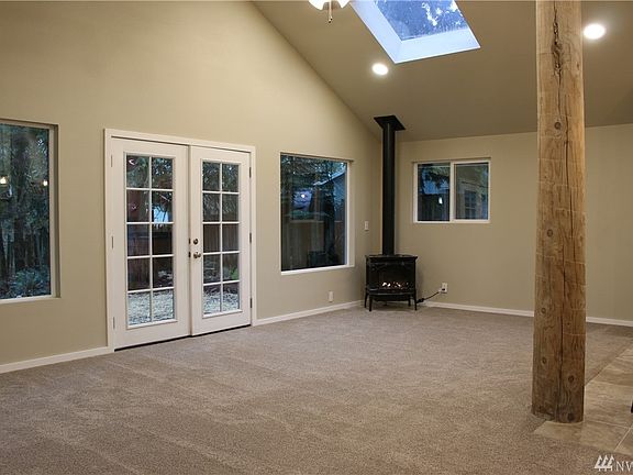 Beautifully updated Home move in ready!! Open floor plan light & bright W/vaulted ceilings. All new tile flooring, lighting, paint, carpet, cabinets, tankless water heater, stainless steel appl & so much more. 1 bedroom 1 guest room W/closet , updated bath. This picturesque lot focuses on a serene back yard W/pond, creek & wild life. Community offers pool, clubhouse & river access. Shop W/power & storage shed. Close to Granite Falls, trails, parks,. Approx. 20 miles to Boeing and I-5.