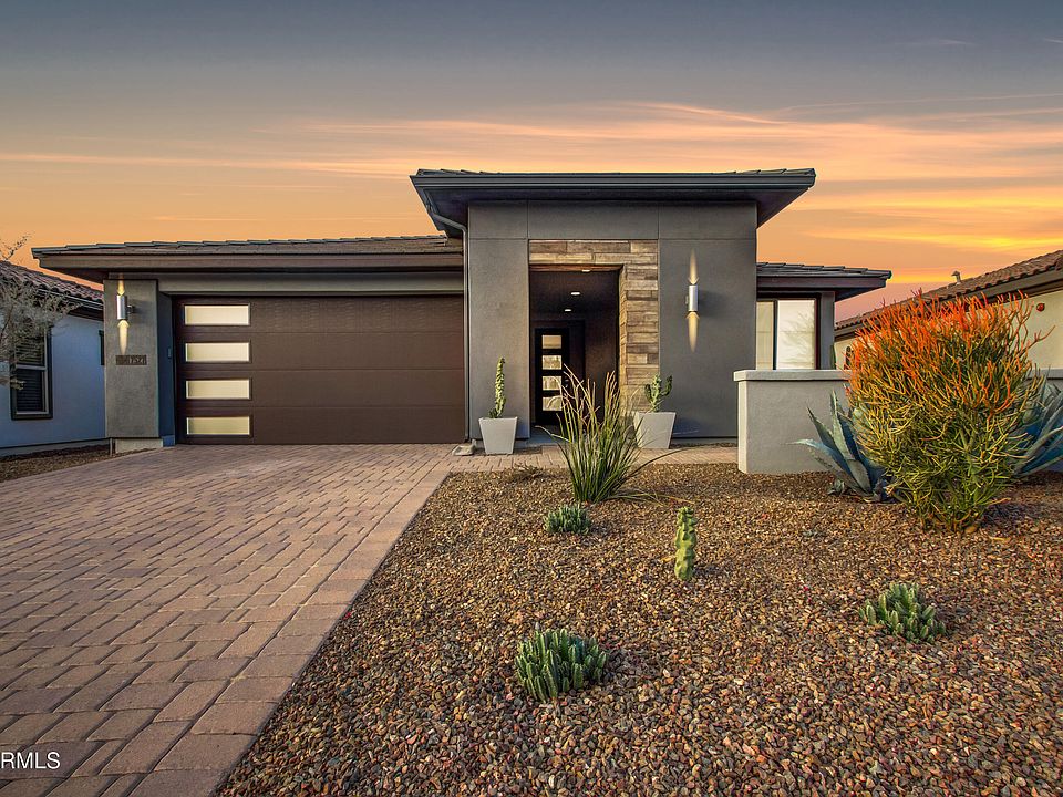 WATCH THE SUNRISE OVER FOUR PEAKS EACH MORNING FROM YOU FRONT PATIO! Located in prestigious Trilogy at Verde River, this highly upgraded, meticulously maintained, contemporary, bright, and open Juniper floor plan built in 2020 boasts features such as plank wood-look tile flooring, energy-efficient neutral cellular shades, dimmer switch controlled can lights, ethernet connections, a laundry room with a sink and abundant cabinetry, an extended-length garage with a service door, a tankless water heater, and an easy-to-use water softener. In addition to the extensive builder and previous owner's upgrades, reference the over $100,000 of current owner upgrades listed in the Documents section of the listing. The home offers a well-designed kitchen with an island, neutral granite countertops, GE Monogram stainless steel appliances, white cabinets with soft-close drawers and cabinet rollouts, under-cabinet LED lighting, a walk-in pantry, and a home management center featuring a built-in desk with ethernet. The primary bathroom includes an updated shower stall with natural pebble stone, double sinks, and under-cabinet LED lighting. The secondary bathroom features a bright white renovated shower stall with natural marble mosaic flooring and niche as well as under-cabinet LED lighting. The three-panel multi-slide patio door, with a retractable screen door, opens onto a covered patio with remote-controlled shade screens (on all three sides), which help to lower energy costs and extend the comfortable use of this outdoor space. The low water/low maintenance desert landscaping is highlighted with a variety of cacti, agaves, and succulents that complement the recently painted contemporary exterior.