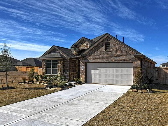 The Wyndham II Plan is a beautiful one-story home with 3 bedrooms and 2 bathrooms. It features a formal dining area and a split floorplan that provides privacy and flow throughout the home. Enjoy a spacious family room with clear views from the kitchen to the breakfast area. Features include faux wood flooring, faux wood blinds, and faux granite countertops, along with a two-car garage, fenced backyard, and a covered patio. All homes are SimplyMaintained for a $100 monthly fee that includes front and back yard lawn care and exterior pest control. Dellrose is a community in Hockley, TX, with easy access to Highway 290 and the Grand Parkway for seamless commutes to Cypress, downtown Houston, and The Woodlands. Located within Waller ISD, it provides access to solid public schools. On-site amenities include a resort-style pool, splash pad, playgrounds, tennis courts, walking trails, lakefront green spaces, and a clubhouse designed for events and gatherings. For nearby attractions, Houston Premium Outlets and Cypress Lakes Golf Club are just minutes away—perfect for shopping sprees and weekend fun.