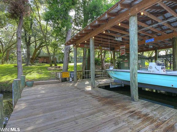 Enjoy Fish River to it's fullest with this move-in ready 3 bedroom 2 bathroom riverfront home. When you walk out the back door, you are welcomed with approximately 100' of beautiful river frontage, a covered dock with 2 boat lifts and several beautiful oak trees. Enjoy the panoramic view of all the above right from the spacious living room. The home was completely renovated and the roof was replaced in 2012. Some of the features include spray foam insulation, tankless water heater, stainless steel appliances, gas stove, solid wood interior doors, tile flooring throughout, wood burning fireplace, and a multi-room audio system. Home is very easy to show so do not hesitate to request a last-minute showing.