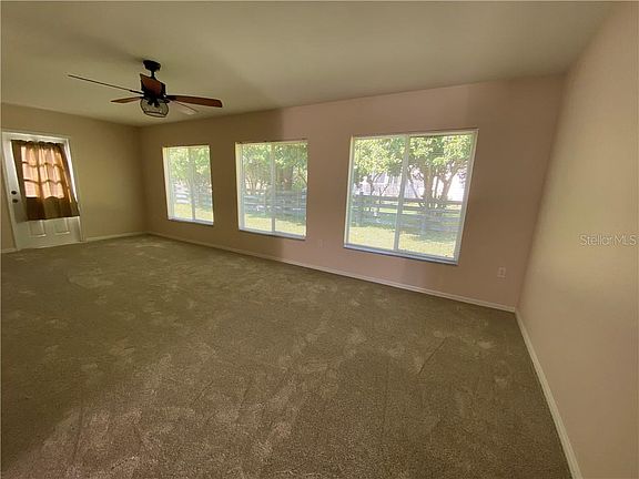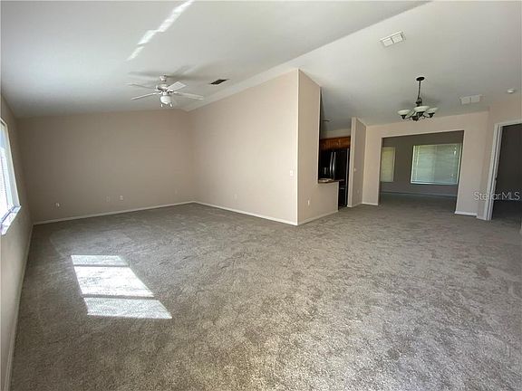 PRICE REDUCED. Don't miss this popular Palm Model with an eat-in-kitchen and inside laundry. The Largest of the Palm models this property has new HVAC in 2016, Roof in 2002 and newer appliances. Carpet was replaced throughout the house new 2020. Kitchen is ceramic tiled, recessed lighting, and has a breakfast bar. Storage is abundant in this kitchen. Colors are neutral and ready for your decorating splashes. Yard is small but has a fence with hedge which back up to the Villages. Location is close to the softball field, Nature Park, and RV parking for convenience. The main hub of Spruce Creek South our Community Activity Center is only a few blocks away. All the homes in Spruce Creek South are site built homes. Our community has most of the outdoor and indoor sports and games of the Villages without the crowds. A total of 1600 homes. Gated security, security petrol, on site restaurant and lounge, 18 hole golf course which is pay as you play, and much more. Give us a look.