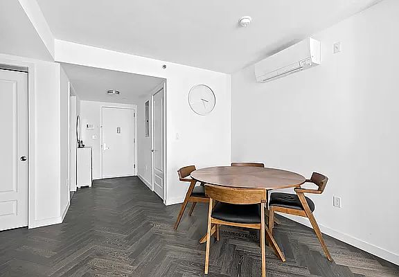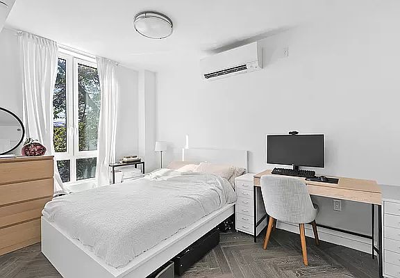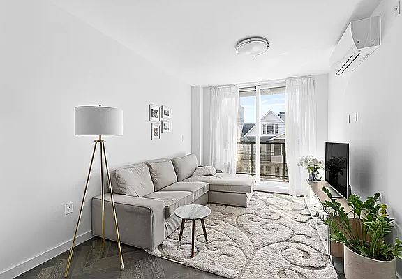 Welcome to Homecrest's premier luxury building, The EDGE. Enter into the lobby and ride the elevator up to the home of your dreams. Apartment 3B is a one bedroom, one bathroom with a large private balcony. Low monthly charges, and 11 years remaining on the tax abatement. The apartment features an open living area, gorgeous Herringbone hardwood floors, an in-unit washer dryer, and double-paned aluminum windows for added temperature insulation and noise mitigation. Other features include streamlined wall-mounted ductless Mitsubishi multi split HVAC systems, the highest level of efficiency for cooling and heating an individual apartment. The chef's kitchen features custom Italian cabinetry by Scavolini, Bosch electric appliances, and quartz countertops/backsplash. The luxurious bathrooms feature TOTO fixtures & Scavolini vanities. EDGE's amenities include an elevator, a lobby lounge featuring comfy couches, coffee bar, large TV, and a furnished roof deck equipped with lounge chairs, wet bar and BBQ grill, perfect for entertaining.