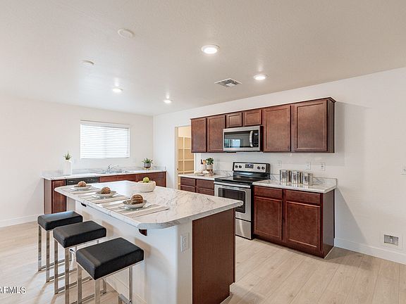 As you enter, you are greeted by an inviting long hallway and open floor concept that seamlessly integrates the living, dining, and kitchen areas, accentuated by a sleek kitchen island. The community offers a park, playground, basketball court, BBQ grill, and gazebo area. Positioned near I-17 and I-10 freeways, Sky Harbor Airport (Waymo accessible), and Downtown Phoenix. The surrounding area boasts an array of conveniences including grocery stores, gas stations, libraries, car washes, banks, post office, police and fire stations, gyms, and so much more.
