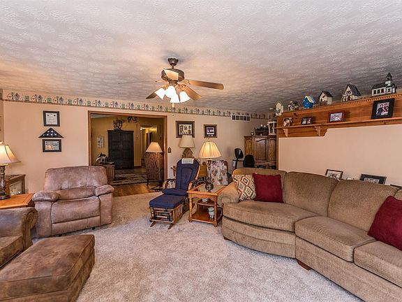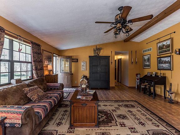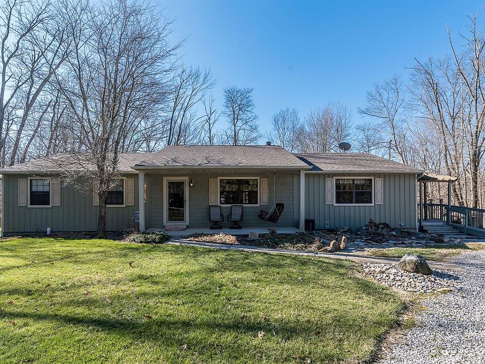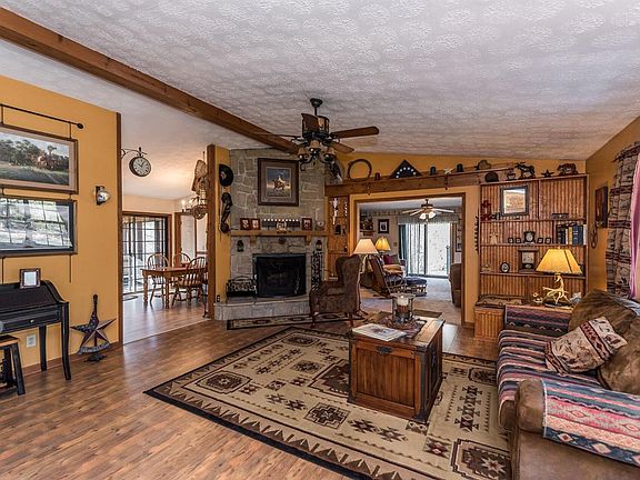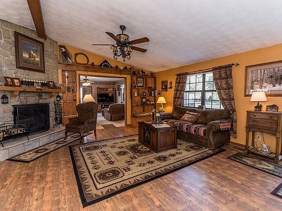 Beautiful Ranch sitting on 5 acres located on a private drive with wooded views. Open floor plan with beautiful stone fireplace in a Quiet location! Oversized three car garage detached with electric. Screened in back porch. Close to shopping and restaurants!