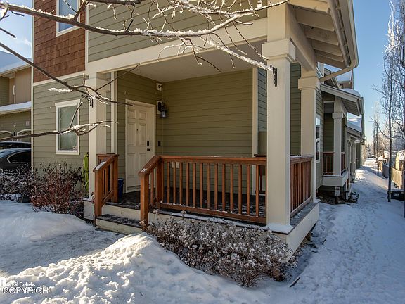 Three bedroom townhome in South Anchorage with a home office loft space. Shows like new with high-end finishes such as walnut laminate flooring on the main level, 4'' base trim, maple shaker-style cabinets & stainless steel appliances, a slate tile entryway, and a see-through gas fireplace with tile surround. All bedrooms are upstairs with new carpet on the stairs and extra wide hallways.