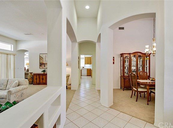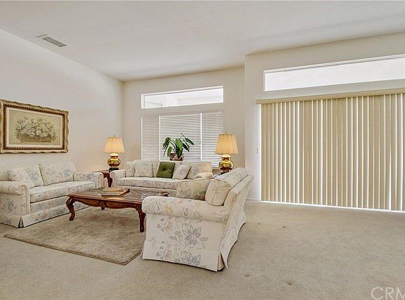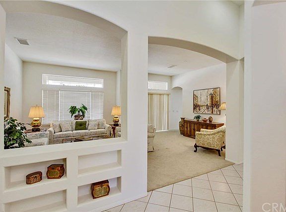 Beautiful, very clean and well maintained one level home with open floor plan located on a corner lot cul-de-sac street in a senior community. This home is 1,988 square feet on a 15,246 square foot lot and features 2 bedrooms including a full bathroom in each bedroom for a total of 2.5 bathrooms, formal living room and dining room areas. This loveable home boasts tile floor throughout the kitchen, living room, laundry room, bathrooms, hallways and plush carpet in the bedrooms and formal living room and dining room areas. The back yard features a tiled patio with a patio cover, rock/gravel ground cover for low maintenance, four planters, four grapefruit trees and a pond area. The two car garage includes a work bench, storage cabinets, custom built wood deck with refrigerator, gas stove, microwave and utility sink. Additional features include, 5 total ceiling fans, dual sinks in master bedroom bathroom, utility sink in laundry room and blinds throughout. Washer/dryer, all appliances and furniture are included.