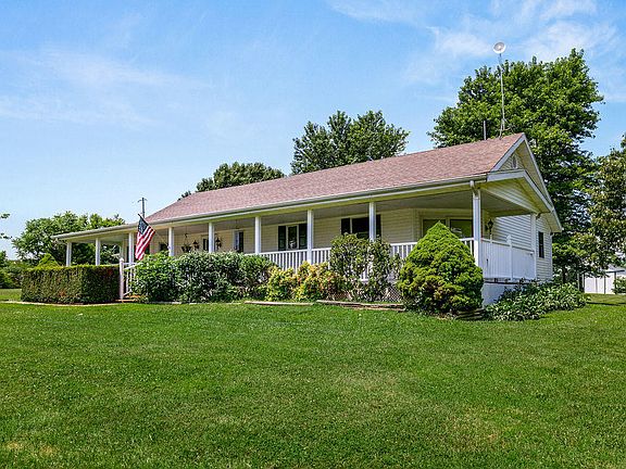 Live out your HGTV dreams with this quintessential country home on acreage complete with wraparound porch! Large kitchen with ample cabinets and island, hardwood floors throughout, large closets, lots of warm hardwood accents. Bedroom 2 has built in cabinets perfect for office or playroom. Main bedroom has double doors leading out to wraparound porch. Garage has hobby area, storm shelter, and bathroom. Dream 56X35 shop building with electric as well as 18X36X12 carport perfect for RV. Large-tiled sunroom overlooking picturesque yard with mature trees and large fenced in area.