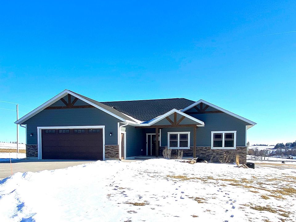 Beautiful custom built home located on an acre lot within Decorah School District. Built in 2017, the open floor plan offers over 2,500 finished square feet with 4 bedrooms/3 bathrooms, and a 2 car attached garage. This home features plenty of windows to offer an abundance of natural lighting. Convenient mudroom with built-in locker area and laundry room located off the garage entrance. Large open kitchen with ample cabinet space, pantry and island. All cabinets and drawers feature premium soft close hinges. Dining area walks out to a maintenance-free deck with stairs flowing into the backyard. Upper level living room houses a beautifully finished shiplap fireplace. Master bedroom features walk in closet with adjoining master bath, including a double vanity and walk-in tile shower. The main level also offers two additional bedrooms with full bath and hardwood floors throughout the kitchen, living and dining. Lower level offers stained concrete floors (with in-floor tubing for future in-floor heat), large family room, play/game area, snack & beverage bar, fourth bedroom, full bath and additional unfinished storage space. The lower level walks out to a beautifully stamped patio with fireplace and sun sails to provide shade on warmer summer days. Perfect for hosting!