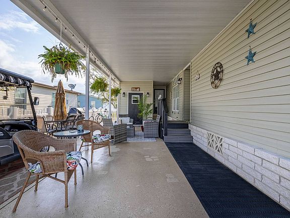 LIMITED TIME OFFER: Enjoy 1 MONTH FREE Lot Rent & Fees with full asking pricen Unpack and Play: Fully Furnished 3-Bed Oasis with Golf Cart & Bikes! Discover unparalleled value in this move-in-ready 3-bedroom, 2-bathroom home within a lively 55+ community (45+ second resident). This isn't your typical home; it's a complete package, featuring beautiful new furniture, a treadmill, and even a club cart golf cart and bikes! Relax and entertain on the large front patio, or utilize the convenient shed for extra storage. The extended concrete driveway with a charming picket fence adds curb appeal and practicality. The expanded lanai adds extra living space, and the open kitchen is ideal for gatherings. Enjoy recent upgrades like a 2020 AC, 2019 washing machine, and a 2014 roof. The community itself is a resort-style paradise, a pool, spa, tiki huts, pickleball, and more. For $1265.00, your lot rent covers water, sewer, trash, and amenities. Add a $164.12 cable/internet package, $65.71 share tax, and $11.82 liability insurance for complete living. Located just 23 minutes from Disney, this is more than a home; it's a lifestyle upgrade. Don't miss this unique opportunity! Schedule your showing today.------ OFERTA POR TIEMPO LIMITADO: ¡Disfrute de 1 MES GRATIS de Alquiler de Lote y Tarifas! Desempaque y Disfrute: ¡Oasis Amueblado de 3 Habitaciones con Carrito de Golf y Bicicletas! Descubra un valor incomparable en esta casa lista para mudarse de 3 dormitorios y 2 baños dentro de una animada comunidad para mayores de 55 años (segundo residente de 45+ años). Esta no es una casa típica; es un paquete completo, que incluye hermosos muebles nuevos, una caminadora e ¡incluso un carrito de golf club car y bicicletas! Relajese y entretenga en el gran patio delantero, o utilice el conveniente cobertizo para almacenamiento adicional. La entrada de concreto extendida con una encantadora cerca de estacas agrega atractivo exterior y practicidad. El lanai ampliado agrega espacio habitable adicional, y la cocina abierta es ideal para reuniones. Disfrute de mejoras recientes como un aire acondicionado de 2020, una lavadora de 2019 y un techo de 2014. La comunidad en sí es un paraíso estilo centro turístico, con piscina, spa, cabañas tiki, pickleball y mas. Por $1265.00, el alquiler de su lote cubre agua, alcantarillado, basura y comodidades. Agregue un paquete de cable/internet de $164.12, impuesto compartido de $65.71 y seguro de responsabilidad civil de $11.82 para una vida completa. Ubicado a solo 23 minutos de Disney, esto es mas que un hogar; es una mejora de estilo de vida. ¡No se pierda esta oportunidad única! Programe su visita hoy.