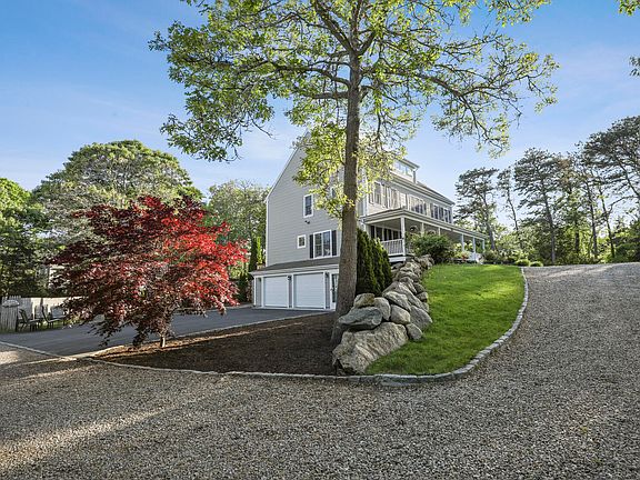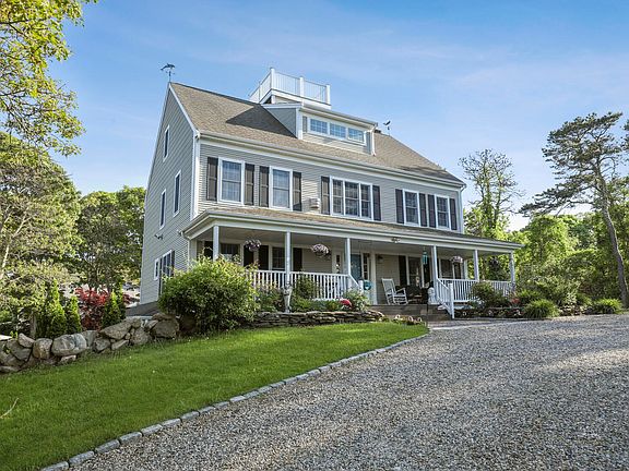 Leave the stress of the world behind you and experience the joys of living in a private, 1.54 acre setting, butting 26 acres of conservation land. This lovely 2,560 square foot home is located in desirable East Dennis, near Quivet Neck and boasts a separate 1 bedroom suite over the oversized garage. In the main house, the spacious first floor features a cozy den and family room, complete with a wood burning, custom built fireplace. You will also find a bright and open kitchen, with a separate dining room, perfect for entertaining. Step outside onto the sizable deck with a power awning and overlook the exceptional backyard, which is graced with mature gardens and custom built stone walls. The second floor includes three spacious bedrooms and an additional gathering space with distant views of Sesuit Harbor. Both a generous sized unfinished third floor (which leads to a widow's walk) and a partially finished basement with a half bath allow for potential expansion for new owners! The separate living space over the garage is perfect for guests and includes a bedroom, living room with fireplace, kitchenette and full bath.