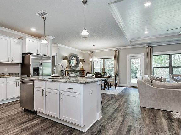 Great Location and features galore! Currently under construction, this beautiful, open floor plan is 2338 sqft with 4 Bedrooms and 3 Baths. Only minutes from Alabama's beautiful sugar white sand beaches. Features include: 9' ceilings throughout, tray ceilings finished with crown molding and ceiling fans in the Great Room and Large Master bedroom (17'x17'). Great Room features a beautiful wood burning fireplace. Granite counters (3cm) in kitchen and baths. Kitchen features a large island with counter height breakfast bar & pendant lights, Samsung stainless steel appliances, beautiful painted cabinets and a large walk-in pantry. Master bath has a garden tub, separate shower, double vanity and a large walk-in closet with door to laundry room for convenience. Also has covered front & back porches and a large Three Car garage with room for all your toys. Quail Landing community features low maintenance, four side brick homes with modern amenities, that are Certified Gold Fortified, with Craftsman style trim package inside and out, carriage style garage doors with openers, and decorative plant package with full sod (where cleared). Photos are representative samples from a similar home. Finishes, options, and interior and exterior colors may differ from photos. Garage door will not have windows. Disclaimer: All information provided is deemed reliable, but is not guaranteed and should be independently verified.