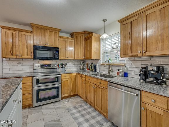 Welcome to your modern farmhouse oasis on Watts Bar Lake! This stunning lakefront property offers the epitome of contemporary luxury living gently sloping to the covered double-decker dock with slide, and 1.5 yr old boat lift which accommodates approx 25 foot boat, nestled on over an acre of picturesque land.