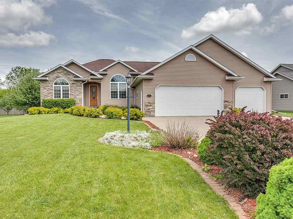 Enjoy the open concept floor plan of this gently live in ranch style home. Great room offers volume ceilings with 3 way fireplace and is open to the kitchen. Kitchen shares the ceiling height with lots of cabinets and raised island. Eat-in dining w/patio door to elevated deck. Split bedroom design for privacy. Master w/jetted tub and separate shower. 1s Floor office. Lower level awaits your finishing touches and offers stub in for future bath and Daylight windows. Oversized garage w/workshop area. Private yard w/beautiful landscape.