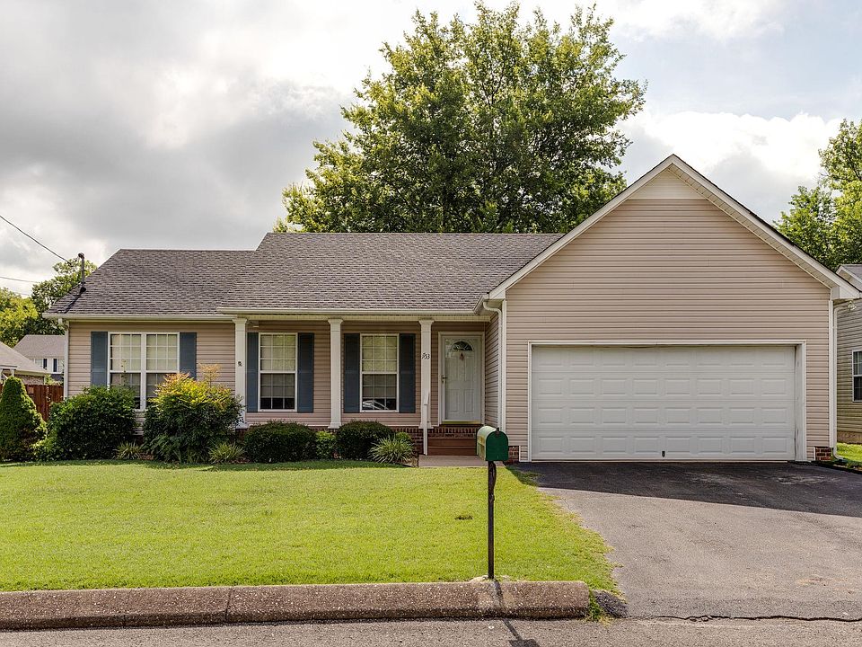 Nice One Story Home w/ Split Bedroom floor plan; Master BR has Walk-in Closet; Large Living Room opens up to Eat-in area; Oversized Garage with Workbench; Private Fenced Backyard with Nice Size Deck & Patio is great for Entertaining