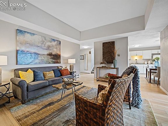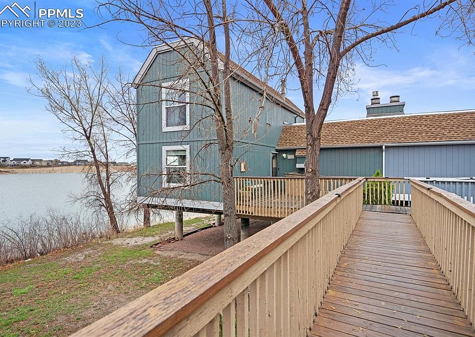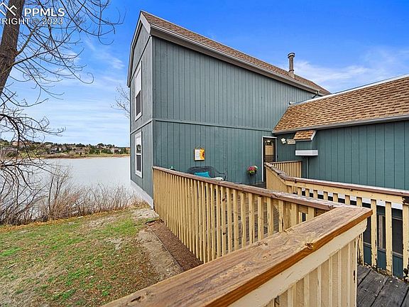 LAKE LIFE. IN COLORADO. This is it! Your chance to own a rare one-of-a-kind waterfront, mountain view, end town home in Monument located just minutes from I-25 access. Bask in breathtaking lakefront views of Lake Woodmoor, Pikes Peak, and the splendor of the Front Range Mountains – all from the comfort of your new home. The main level features a bright eat-in Kitchen with new cabinets (2022) and LVP Flooring (2022), boasting loads of natural light throughout the home. The focal point of the living room is the floor-to-ceiling faux stone fireplace, emphasized by the 10’ ceilings. As you step into the flex room, the panoramic views of the lake backdropped by the Pikes Peak Front Range Mountains will have you dreaming of what this room could be for you (office/dining room/morning yoga studio). The Main Level Owner’s Bedroom and en suite Bath complete this level. Upstairs are two additional Bedrooms and a recently remodeled Bathroom (2022). Laundry located on upper level. All three bedrooms boast exceptionally large closet space. BONUS! Not Included in the square footage is a lower level of two rooms of unfinished space full of potential, located at “beach level.” Bring your ideas and dreams of what you want to make this space! Finally, this townhome includes a detached oversized 2-car garage for additional storage. If you have been searching for something truly unique to invest in with fast commutes to both Denver and Downtown Colorado Springs … you have finally found it! The community offers 144 acres of Common Area for Hiking, Biking, Fishing, and simply Relaxing enjoying that Lake Life you have been dreaming of.