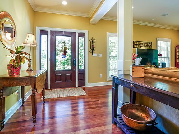 Relax on nearly five acres of paradise all while being close to expressways and conveniences. This home is situated just inside Fisherville between Shelbyville and Taylorsville Rd in Fisherville Woods. The neighborhood boasts large lots and offers privacy for each homeowner. This lot is no exception, with a winding drive into a large open yard area this home is surrounded by woods for privacy and beauty. You can enjoy the beauty of nature with the many outdoor spaces including: a front wrap-around covered porch, rear screened deck and three patios for relaxing or entertaining. Walking inside the home the main areas have crown molding and cherry hardwood flooring with a matte, no-sheen finish that is sure to delight. The great room showcases a stone wood burning fireplace as the show piece for this oversized room. The kitchen has loads of cabinet and countertop space with a large pantry cabinet, and some with pull out shelves in cabinets, large two-tier island with cooktop, built-in advantium and standard convection oven, and a built-in bench with table seating. Three bedrooms are on the main floor of the home and a large fourth bedroom is present in the basement. The owner suite has a large ensuite bath with whirl-pool tub, separate shower and walk-in closet. The owner suite has direct access to the laundry room that features a planning desk, second refrigerator, and additional cabinet and countertop space. Just off the hallway and laundry room is a separate office nook that has a built-in desk perfect for those that work from home or possible future NTI instruction. The other two bedrooms are located just off the drop zone area off the garage and offer a separate hallway for privacy and access to the second full bath on this level. The lower level is an entertainer's delight with nine foot ceilings and several large spaces for a pool or game table area, exercise nook, large living room and a space for an oversized table and chairs. The wet bar has accent lighting and seating for four. Outside on this private oasis you have a built-in firepit with flagstone surround, paths leading to various locations on the property and flowers that are a gardeners delight. The four car garage has three open bays and the fourth is accessed through a separate inside door and is currently used as a woodworking shop. Extras to this home include: GeoThermal Heating and cooling, sound system through most of the home installed by Century Entertainment, and CAT5 wiring.