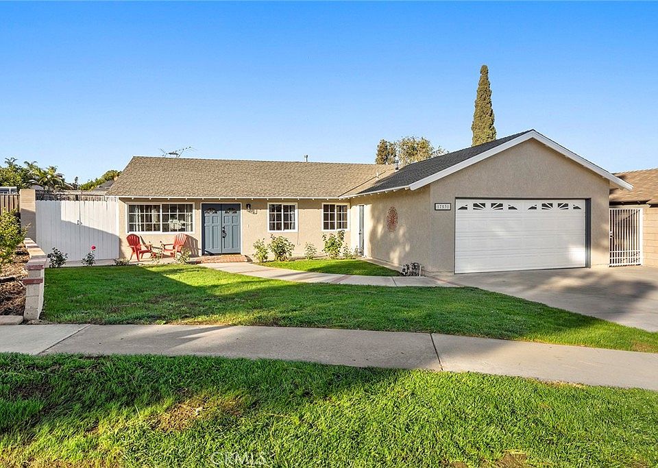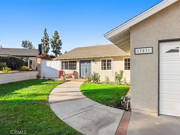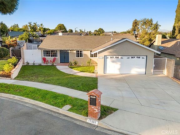 Fresh, welcoming and stylish – set at the end of this pride of ownership cul-de-sac street we are proud to present 17531 Pine Circle to the market for the first time in 25 years. Just refreshed with FRESH interior and exterior paint, luxury vinyl plank flooring throughout living areas and hallway. A double door entry leads to an inviting and open concept interior hosting a living and dining room plus a great bonus living area that could serve as a home office (formally bedroom 4). The dining room enjoys recessed lighting and a gas fireplace with wood mantle. Just across from the dining room is the updated kitchen with tile flooring and S.S. gas range, fridge and stylish painted oak cabinetry. Down the hall all bedrooms enjoy laminate flooring and ceiling fans, the primary suite has mirrored closet doors and a generously sized FULL bathroom en-suite. A sliding door leads from the primary bedroom to the backyard. Another sliding door leads from the dining room to the spacious covered patio and private backyard, manicured shrubs and a lush green lawn provide the perfect place for family play time or afternoon BBQs. A large side yard and new double gate provide easy access and a sturdy shed is included too. All this plus central HVAC, dual pane windows and sliders and a whole house fan! The 2-car garage has additional rafter storage space, laundry connections (washer and dryer included) and newer water heater. Enjoy all this in addition to great schools, steps from shopping and trails!