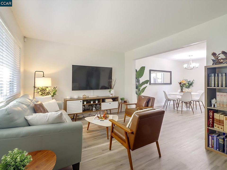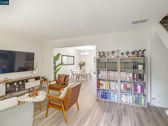 Gorgeous & turnkey! Come & see this spacious 2 BR, 1.5 BA townhome centrally located in San Lorenzo offering 1168 sqft. New laminate flooring & new interior paint w/ scraped ceilings run throughout the downstairs common area. The open concept kitchen/DR/LR offers a great flow for entertaining. The kitchen offers solid surface counters, SS appliances & new microwave & dishwasher. Interior laundry & updated half BA complete the downstairs. Upstairs gives way to the oversized BRs w/ abundant closet space. The primary BR features walk-in closet, office nook & access to full BA. Storage is no problem w/ storage shed & storage closet. Each unit offers 2 parking spaces, one of which is covered. Community pool & green space give this complex the feeling of tranquility. With a low monthly HOA, this is a home perfect for all ages & stages. Close proximity to BART & freeway access make this home central to everything & walking distance to Meek park adds a wonderful gift for families. Come & see all this home has to offer!