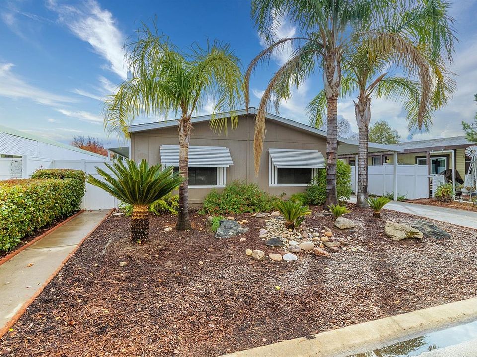 This home is a palm tree oasis tucked away in the prestigious gated community, Millerton Lake Mobile Home Village. The location of this mobile home is just minutes from Millerton Lake and 18 minutes from Clovis. This mobile home park is unique because the land is owned. The community offers access to a pool, clubhouse, and free RV and boat storage. The 3 bedroom 2 bath home has an open concept floor plan making the living area and dining area feel spacious. The kitchen was recently updated with upgraded tile, electric appliances, and a breakfast eating bar. Open shelving, a lot of counter space, and a skylight are also great features of this kitchen. The skylight adds wonderful natural light. The laundry room is inside. The master bedroom has been updated with laminate flooring and has a master bathroom attached. A deck with wheel chair access, a shed for storage, and fruit trees are nice features of the backyard. The low maintenance yard is a bonus! Go and see it today!