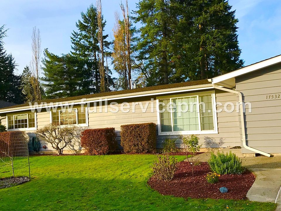 This remodeled rambler in East Renton Highlands has a private feel and is surrounded by beautiful and tall landscaping. Great Location It lies in a great neighborhood and is close to everything! This house sits above I-405 in a quiet neighborhood with great neighbors. The street does receive a fair amount of traffic, so you must be comfortable with that. There is easy freeway access to I-405, I-5, Hwy. 167, Bellevue, Seattle, Issaquah, The Landing, South Center, shopping, restaurants, parks, schools, and much more! This rambler sits on a level lot on a hill with lots of parking that includes a two-car garage and an oversized driveway. This home also has a full RV spot with hookups available. Many large windows wash this spacious home in natural sunlight. Take advantage of the award-winning Issaquah school district. Enter through the front door and be "WOWed" by the refinished, original, oak flooring in the living and dining rooms. The open space design joins the living room with the dining room and kitchen to make the entire area feel even larger. A gas fireplace complements the living room and provides ambiance for winter evenings. This home has a lot of updated luxury, including new kitchen counters, automatic motion lights, a sensor water faucet, and a 'flex bedroom' with its kitchen and Murphy bed. All this makes it easy and awesome for visiting guests, while also providing a great floor plan! The linear kitchen is easy and functional. Quartz countertops, lots of cabinetry, and a portable toaster oven make meal prep a breeze. All stainless appliances include: fridge, electric range, over-range microwave, and dishwasher. Down the hall is the full bath with a linen closet, then the three bedrooms with full closets. Large windows in all of the bedrooms bathe natural sunlight throughout! Another linen closet in the hall helps with storage. At the other end of the home is another full bath. Off the kitchen door and through the sliding glass door, you will find a large patio, perfect for BBQing and summer entertaining. The large backyard is complete with apple and peach trees! Imagine wonderful barbeques while enjoying the large, grassy lawn and a fire pit! This urban oasis provides privacy and solitude! Just around the patio is a double garage with extended work benches and cabinetry for those special projects. Other amenities include: new paint in & out; energy-efficient, ductless AC & heat pump; new, tankless water heater; newer fridge; LG washer & dryer; LED lighting; workbenches; and hookup for an RV; The functional flex room comes with an optional, separate entrance. It could be used as a 4th bedroom, family room, mother-in-law suite, hobby room, exercise room, or whatever your imagination and needs require. It has a kitchenette & new gas fireplace. Terms: 10-month lease. $2800 security deposit; $400 admin fee; $40/adult app fee; $40/mo Resident Benefits Package; All utilities by tenant. Last month's rent deposit staged over 4 months to ease the burden. No smoking inside. No pets. Renter's insurance required. $500 with signed holding agreement will hold this beautiful home exclusively for you, and will be credited towards security deposit at move-in. Keywords: Briarwood, Liberty, Maywood, Maplewood, IKEA, Valley Medical, Kent, Auburn, Kennydale, Newcastle, Issaquah schools, Maple Valley