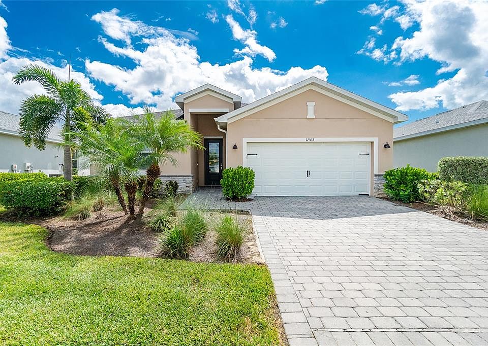 Beautiful 3 Bedroom 2 Full Baths 2 Car Garage custom built Lennar 1,670 sq. ft. home in the highly desired Babcock Ranch Trails Edge community. The moment you arrive at your new home you will begin to appreciate the upgrades from the stacked stone siding, brick paver driveway/walkway, and nicely landscaped yard. Luxury glass front door entry into an extended foyer opens to your spacious family room featuring the popular open/split floor plan with high ceilings and sliders out to your 10x12 screened-in lanai with brick paver floor. The chef in your family is going to love the large kitchen area with an abundance of counter/cabinet space, granite countertops, pantry closet, eat-in space, large breakfast bar, GE stainless steel appliances that include a gas stove and is open to the family room and formal dining room. The master suite is your sanctuary to retire to at the end of the day with an en-suite bathroom featuring a huge walk-in closet, raised soaking tub, granite countertop vanity with his/her sink area, and a walk-in Roman shower. The guest suite features two spacious guest bedrooms and access to a full guest bathroom. Loaded with upgrades you will find decorative lighting, crown molding, a tankless water heater, a laundry room with a washer/dryer, gutters around the home, a smart doorbell, hurricane shutters, and granite throughout. Babcock Ranch is the worlds first solar-powered neighborhood which is a one-of-a-kind self-sustained community. Residents can dine, shop, swim, kayak, hike, golf, fish, bike, check out the weekly community events such as Food Truck Night, and even go to school right in the neighborhood! Come see what makes this home and community so unique!!