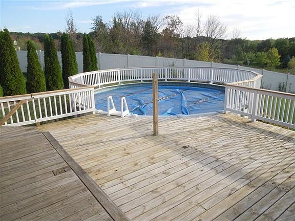 New roof, freshly painted interior, new carpeting in the great room with fireplace, new kitchen countertops, new carpeting in the finished recreation room in the basement, hardwood floors in the dining room and spacious master bedroom which includes 2 closets, private balcony, bath with whirlpool tub and separate shower. Above ground pool on the two tiered deck. Storage shed, attached 2-l/2 car garage. Country living with a reasonable commute to Chicago via the back roads to 394.