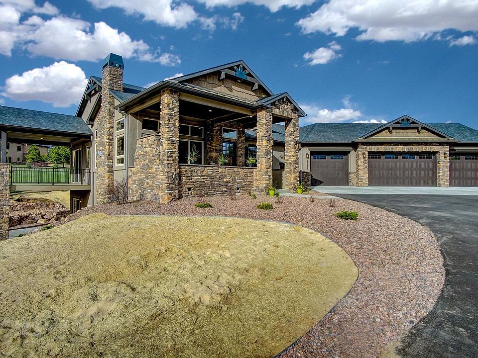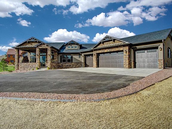 Gorgeous new home sits off the street on premier 2.5 acres w/ views of Pikes Peak in Walden Preserve. Great sense of community with two ponds & 4.6 miles of trails, Covered front porch has gas fireplace & provides great space for taking in mountain views. Main level open floor plan has vaulted ceilings in the great room w/ stone gas fireplace & is open to the gourmet kitchen. Master suite w/ French doors, crown molding & incredible master bathroom. Main level bedroom has Pikes Peak views & connects to private 3/4 bathroom. Walk out lower level has spacious rec room w/ wet bar, two additional bedrooms and spacious storage room. Granite counter tops and arches throughout this home makes it special. 1250 sq ft garage has room for four vehicles and plenty of storage as well as no steps to enter the home. Top quality construction! Come see this special home today.