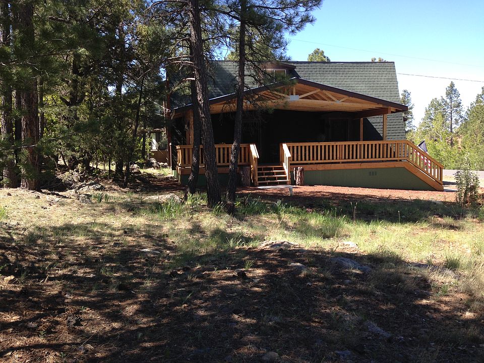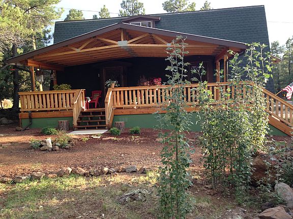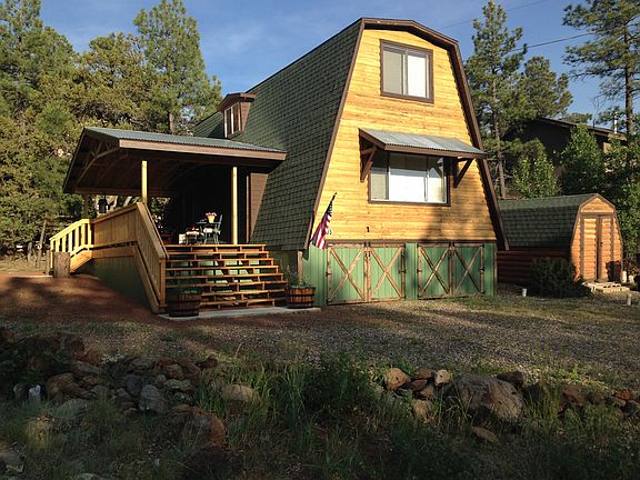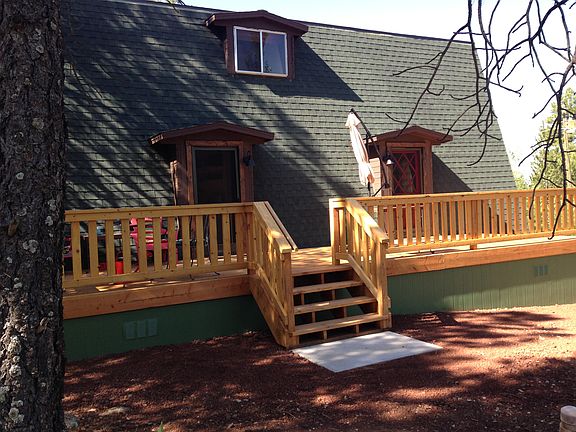 Rustic, Cozy and Adorable describes this Remodeled Cabin. Features include 2 bedrooms, 1 bath, light & bright Country Kitchen, large living room, wood flooring, laundry, propane gas furnace & covered front deck. Cabin comes furnished as viewed. Large (7,655 sq. ft.) corner lot with room for an RV, extra parking plus a nice sized storage shed. Seller is in the process of stairs replacement & re-staining deck. Great location within walking distance to the National Forest.