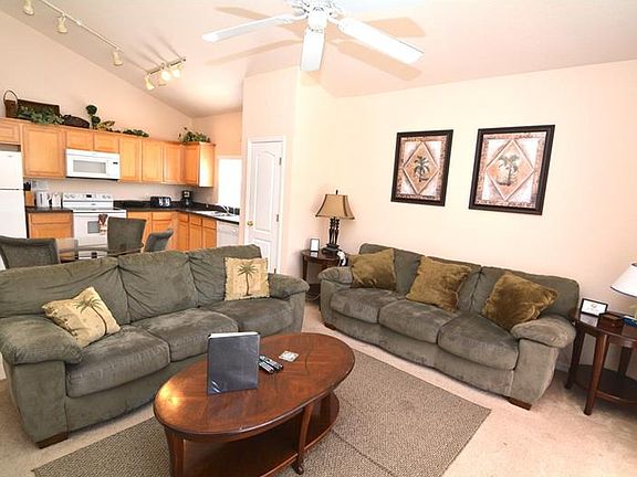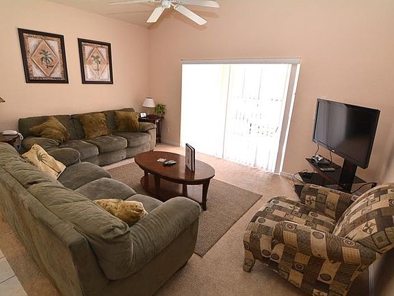 Sensational south facing private pool and spa with spectacular views and no rear neighbors!!! Huge extended pool deck with covered patio area is just perfect for entertaining. Formal living room and dining room as you enter the home, toward the rear is the open kitchen with ceramic tile flooring adjacent to the family room. Five bedrooms, four bathrooms that include two masters, one located upstairs and one downstairs. This fully furnished spacious floor plan is the perfect combination for vacationers or a full time resident. Make this home part of your Florida lifestyle!