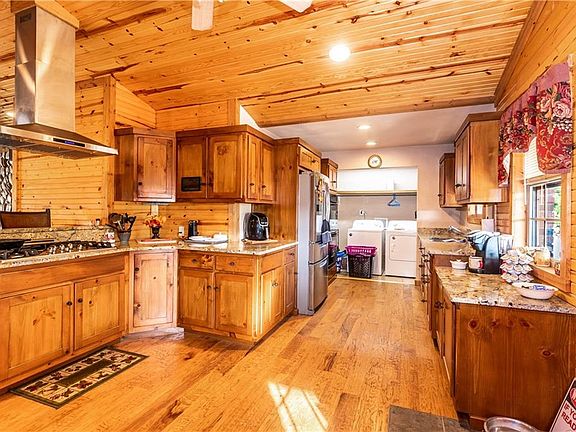Nice brick home near lake with your own pond. Pine sided walls on the main level. Large kitchen with granite counter tops. Double ovens for those holiday dinners. Custom rock wall in living room behind the woodstove. House is wired for sound. Large back deck overlooking the pond, this house is made for entertaining. Main level has living area, kitchen, laundry, master bedroom w/ master bath, 2nd bedroom, and 2nd bathroom. Lower level has large family room, 2 bedrooms and a bathroom with a walkout to the pond area.