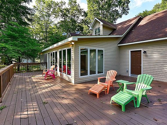 Waterfront living at it's finest. Located on a level lot, this 3300 square foot, 2-story home boasts 4 bedrooms and 3 baths plus another 1/2 bath accessible from the back deck. This deck spans the entire length of the house. All windows replaced 2018 with Andersen double pane glass plus 18 crank-out windows in sunroom. Two high efficiency heat pumps installed in June 2020. Hardwood floors throughout the living spaces. The sun room offers amazing views of the water and is an excellent space for entertaining. Exterior features include a storage shed, a $100,000 all steel and concrete 3-slip boathouse with 4 electric lifts plus a 1500 SF concrete upper deck and an 8x4 storage closet. Will pay a buyers agent 2%