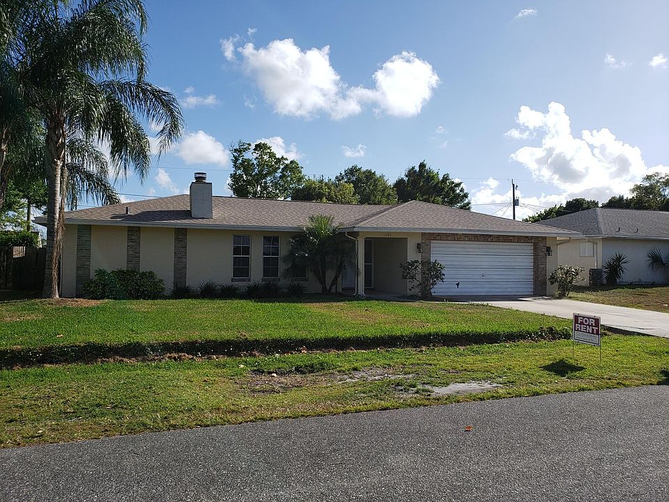 Large 4 bedroom home with inground pool, City water, Between Palm Bay Road and Malabar Road. Convenient location. All new Ceramic tile thru out, New Master Shower, All new interior Paint, New blinds, New Stove, Fireplace. Owner pays Pool Service for chemicals only