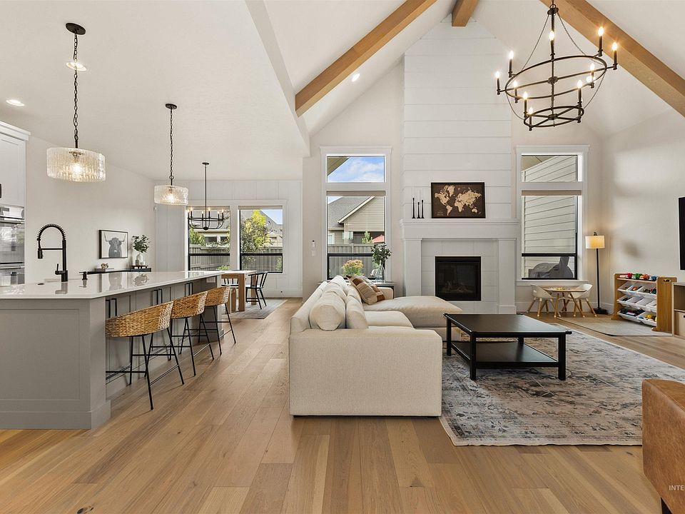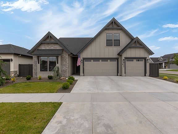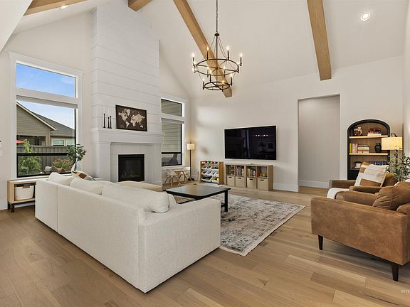 Beautiful modern farmhouse open floorplan by James Clyde Homes. Built in 2024, this value-priced home includes luxury finishes and owner upgrades, such as automated blinds and a hardwired security system. Situated on a rare corner lot with a South-facing 3-car garage a close to the community pool and Discovery Park. Entertainer’s kitchen features stainless steel Thermador Appliances (including a 5-burner gas cooktop, double ovens, and a drawer microwave), a walk-in pantry, custom cabinetry, quartz countertops, and an oversized island with ample storage. Covered patio located off the dining room. Spacious great room with a gas fireplace, 26 ft vaulted ceilings, exposed beams, and pecan hardwood floors throughout. Master suite with walk-in shower, soaking tub, and a large walk-in closet. Oversized bedrooms and separate upstairs guest suite or bonus room with a full bathroom. BTVAI!