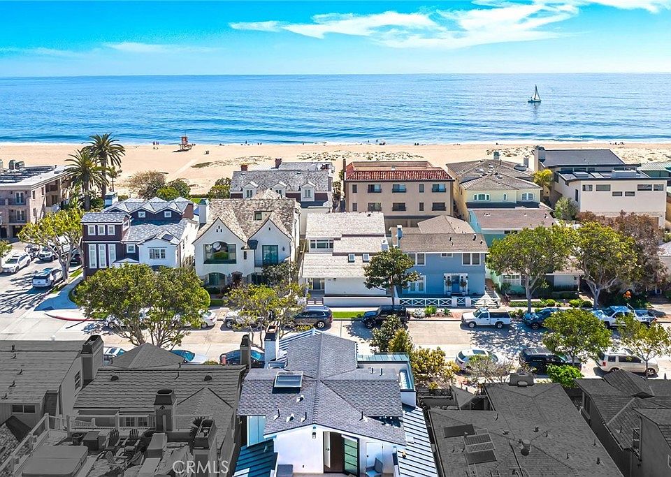 Just steps from the sand, this custom Peninsula Point residence offers 4 bedrooms, 4.5 baths, and an abundance of thoughtfully designed living space. The expansive front patio opens through bi-fold doors into a striking great room with wide-plank oak floors and a sleek fireplace. A chef’s kitchen pairs custom cabinetry with honed stone counters and premium appliances, while an expansive staircase wraps a sculptural chandelier spanning all three levels. Upstairs, the vaulted primary suite includes a private office, generous walk-in closet, and a spacious bath with dual vanities and a walk-in shower. Three additional bedrooms—one en suite—plus an additional bath complete the second level. On the third level, a bonus room with bath connects to two separate rooftop decks—one partially covered by a loggia—with peekaboo ocean views and sweeping city lights. Situated near the iconic Wedge and world-class beaches, this is a rare offering on one of Newport’s most sought-after streets.