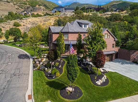 A timeless, red brick Victorian home in a premier neighborhood of Davis County. A breath of fresh air to find a home, and architectural style that will never look dated. A classic design perched on an ideal lot in Hidden Springs, within feet of world-class hiking & biking trails-- Enjoy views of the Mountains from your covered front porch and views of the valley from a covered patio that walks out to a flat, meticulously landscaped yard, with granite boulder-work that highlights ornamental trees and fringes the woods. Inside Enjoy Brazilian walnut floors, custom cherry cabinets, travertine tile, new bartile, roof, second kitchen in the basement, movie theater, Juliet bacony, cathedral ceilings, built-in Bosch fridge & freezer, four-car garage, shop in garage. This home was a custom build, intended to be lived in by the builder-- and once part of the parade of homes, this is a showpiece custom design, rich with custom trim, accents, high quality fixtures, appliances, & systems. Main floor living in a 4-story home?? Yes!: An elevator runs from the basement garage-floor to the 3rd floor-- only the bonus attic room is not reachable from the elevator. In the best spot in Hidden Springs, directly across the street from the neighborhood pool, & clubhouse, complete with hot tub, exercise room, gathering room, and playground. This is a one of a kind home & location. .37 acre lot boundary ends roughly at the Rock retaining wall, east of the home.